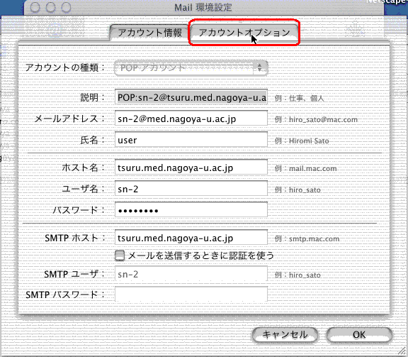 3.「アカウントオプション」タブをクリックします。