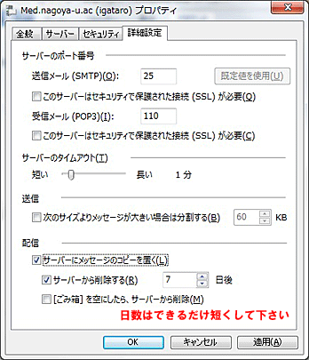 サーバに指定日数だけメールを保存しておく方法